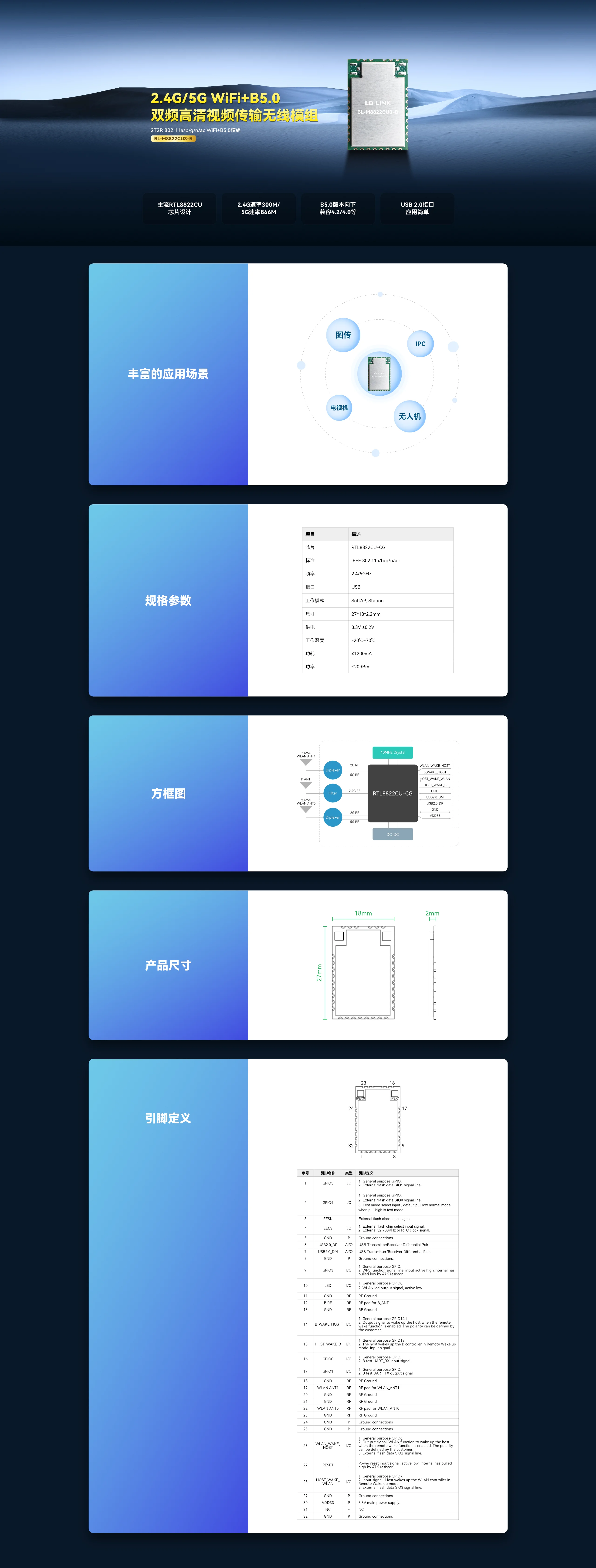2T2R 802.11a/b/g/n/ac WiFi+B5.0模组